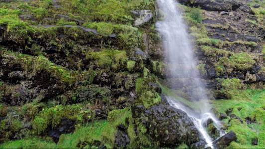 | Idyllisk omgivelse | Þorsteinslundur ligger i en idyllisk omgivelse med vannfallet og fjell. |