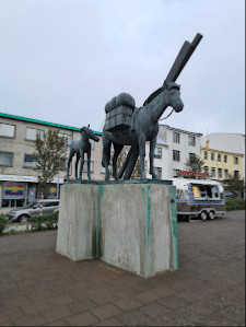 A potent symbol of Iceland’s past, when the horse was the Icelanders’ only means of overland transport, the piece was to be placed at Hlemmur: formerly a stopping-place for trains of pack horses to and from Reykjavík, in later years it became a centre of public transport. There were also plans to place at Hlemmur a replica of the drinking trough where horses had been watered in olden times. The piece depicts a heavily laden mare with her foal. On the left side she is carrying planks of wood (always in short supply, as Iceland had no large trees), while on the right she had been loaded with a wooden chest and bundles. The foal follows along close behind her. Sigurjón included the foal to emphasise the conditions of impoverished farmers: some were so poor that even a mare with a foal had to be used as a beast of burden.